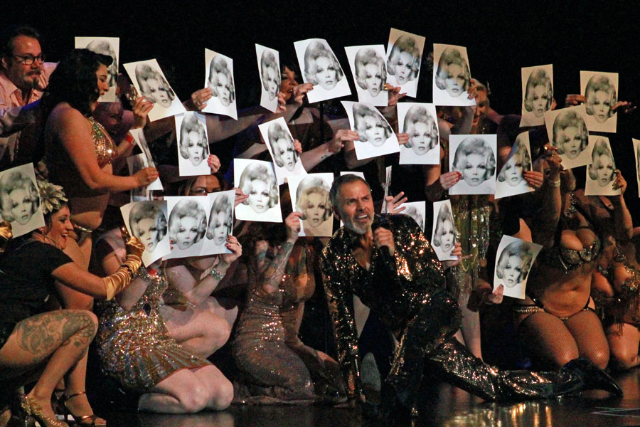 I have always been a fan of the late Liz Renay. Author, Artist, Dancer, Painter, Streaker, Lover to Elvis, Frank Sinatra and Sammy Davis Jr. (not at the same time) and star of John Waters Films. I first met her in Helensdale, California in 2005. Introduced to me by DJ and Times Square Historian Scott Ewalt, I was lucky enough to have late dinner / early breakfast with her at 3:30 am at a Denny's that first meet. So given the chance to tribute her I jumped and did the splits at the chance. Inspired by a years earlier tribute to Liz Renay done by Scott and the then Paula The Swedish House Wife, I performed as the last act of the closing night of the BHOF weekend. The number was choreographed by The Lovely Elvette and Burlesque Queen Tana Miller Ross and danced by friends and Fans. We even had a streaker! I LOVE YOU LIZ RENAY