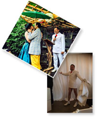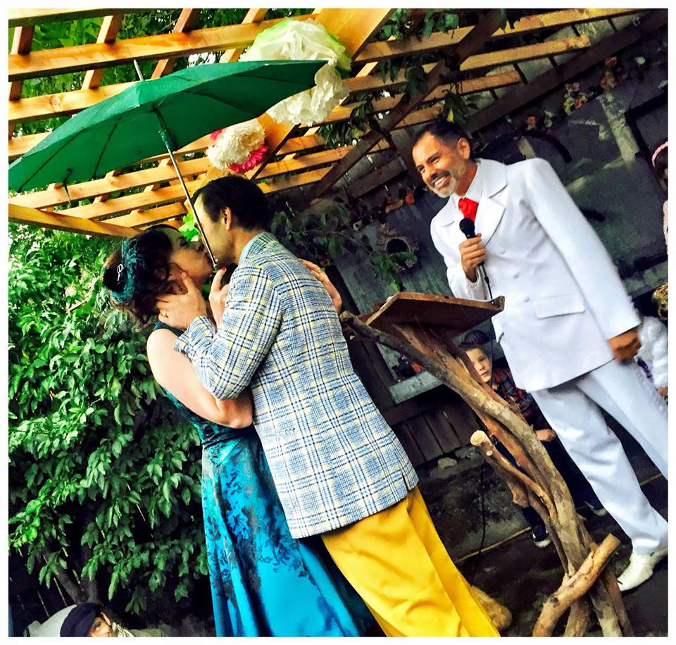 In Seattle, long time friend and partner in theatrical crimes Kaleb Hagan-Kerr and his Lovely wife Erin Spencer. It was an outside August Seattle wedding…so of course it rained. It was pretty darn wet and fun!!!